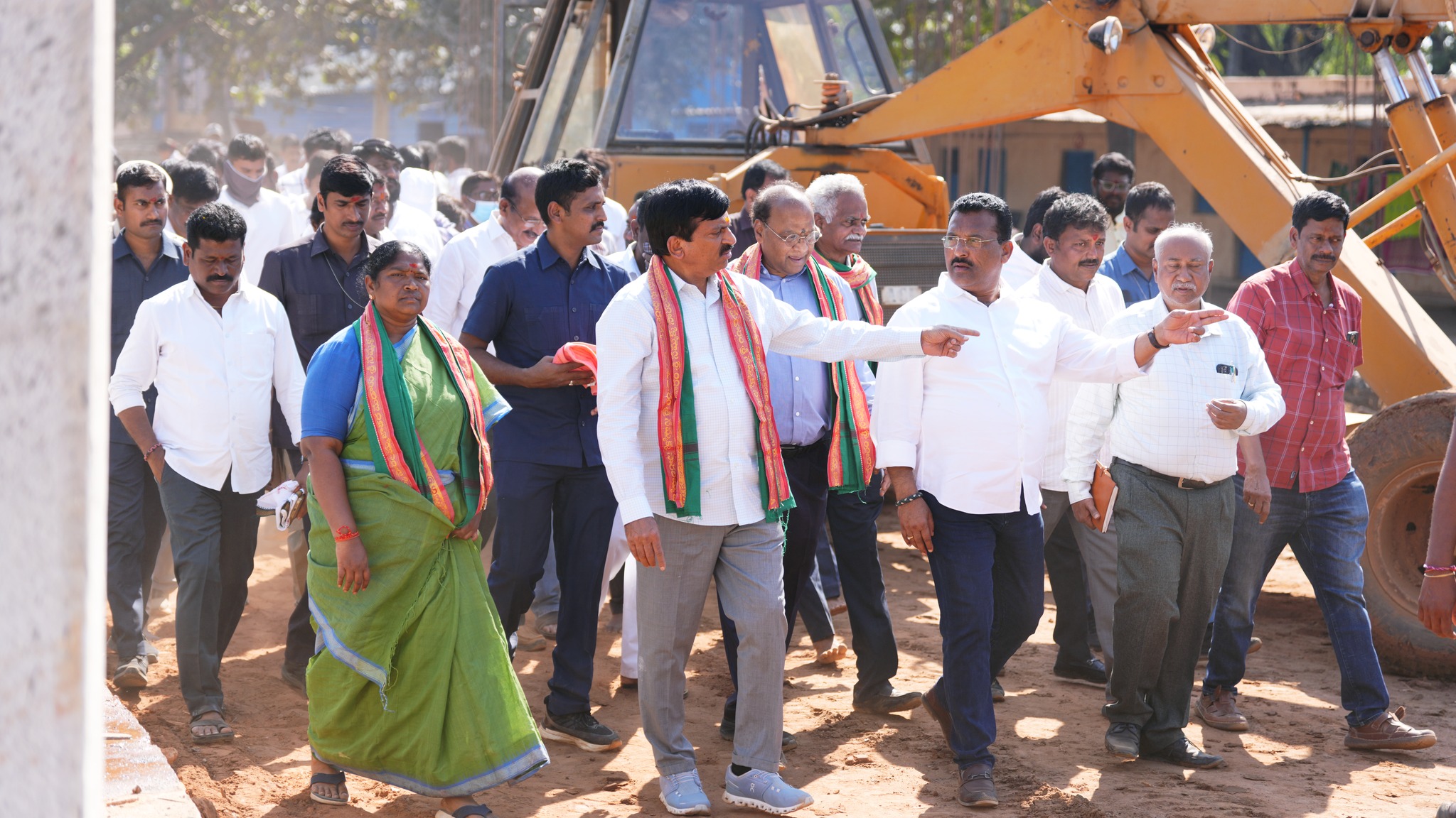 రాష్ట్ర మంత్రులు పొంగులేటి శ్రీనివాస్ రెడ్డి, సీతక్క మేడారం సమ్మక్క సారలమ్మ దేవాలయ అభివృద్ధి పనులను క్షేత్ర స్థాయిలో పరిశీలించారు. పనులలో నాణ్యత ప్రమాణాలను పాటిస్తూ, నిర్ణీత గడువులోగా త్వరితగతిన పూర్తి చేయాలని సంబంధిత అధికారులను, గుత్తేదారులను ఈ సందర్భంగా ఆదేశించారు. ఎస్ఎస్ తాడ్వాయి మండలంలోని శ్రీ సమ్మక్క సారలమ్మ దేవాలయ గద్దెల పునరుద్ధరణ, అభివృద్ధి పనులతో పాటు, దేవాలయ ప్రాంగణంలోని పగిడిద్దరాజు, గోవిందరాజుల గద్దెల రాతి నిర్మాణాలను, ఆలయ ప్రాంగణ ఫ్లోరింగ్ పనులను, రాతి స్తంభాల స్థాపన నిర్మాణ పనులను, మరియు జంపన్న వాగు వద్ద జరుగుతున్న పనులను మంత్రులు నిశితంగా పరిశీలించారు. ఈ సందర్భంగా మంత్రులు మాట్లాడుతూ, భక్తులకు మెరుగైన సౌకర్యాలు కల్పించేందుకు ఆలయ అభివృద్ధి పనులు అత్యంత ప్రాధాన్యతను కలిగి ఉన్నాయని, పనుల ప్రగతిని ఎప్పటికప్పుడు సమీక్షిస్తామని తెలిపారు. పనులలో ఎలాంటి జాప్యం లేకుండా, వేగవంతంగా పూర్తి చేయాలని వారు పునరుద్ఘాటించారు. ఈ కార్యక్రమంలో ములుగు జిల్లా కాంగ్రెస్ పార్టీ అధ్యక్షుడు పైడాకుల అశోక్, ములుగు జిల్లా గ్రంథాలయ సంస్థ చైర్మన్ భానోత్ రవిచందర్, ములుగు వ్యవసాయ మార్కెట్ కమిటీ చైర్మన్ రేగ కల్యాణి, ఆర్ అండ్ బి అధికారులు, ఇంజనీరింగ్ అధికారులు జిల్లా కాంగ్రెస్ పార్టీ నాయకులు తదితరులు పాల్గొన్నారు.