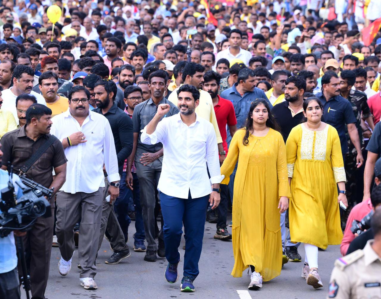 ఆంధ్రప్రదేశ్ రాష్ట్ర రాజకీయాలను కీలకమలుపు తిప్పి, కూటమి పార్టీలను విజయబాట పట్టించిన చారిత్రాత్మక ‘యువగళం’ పాదయాత్రకు మూడేళ్లు పూర్తయ్యాయి. 2023 జనవరి 27 న కుప్పంనుంచి ప్రారంభమైన ఈపాదయాత్ర 226రోజులపాటు 3, 132కిలోమీటర్లు సాగింది, రాష్ట్ర వ్యాప్తంగా ప్రజల్లో మార్పుపట్ల ఆశలు రగిలించింది. మొత్తం 97నియోజకవర్గాల్లో పర్యటించిన లోకేష్ పాదయాత్ర ప్రజల సమస్యలను నేరుగా తెలుసుకుంటూ, పాలనలో మార్పు అవసరాన్ని బలంగా చాటారు. పాదయాత్ర సందర్భంగా రైతులు, యువత, మహిళలు, నిరుద్యోగులు, కార్మికులు ఎదుర్కొంటున్న సమస్యలను ప్రత్యక్షంగా వినిపిస్తూ ప్రజాస్వామ్య స్వరానికి బలమిచ్చింది.. ప్రజలతో కలిసి నడిచి, ప్రజల తరపున పోరాడిన ఈ పాదయాత్ర రాష్ట్ర రాజకీయ సమీకరణాలపై గణనీయమైన ప్రభావం చూపిందని టీడీపీ నాయకులు పేర్కొంటున్నారు. యువతను కేంద్రంగా చేసుకుని సాగిన యువగళం పాదయాత్ర కూటమిపార్టీల విజయంలో కీలకపాత్ర పోషించింది.రాష్ట్ర ప్రజల తరపున యువగళం పాదయాత్రకు నాయకత్వం వహించిన మంత్రి నారా లోకేష్ కు వివిధ వర్గాల నుంచి అభినందనలు వెల్లువెత్తుతున్నాయి. ప్రజా సమస్యల పరిష్కారానికి నిరంతర పోరాటానికి యువగళం నిదర్శనమని పలువురు ప్రశంసిస్తున్నారు. ఏపీ రాజకీయ చరిత్రలో చిరస్థాయిగా నిలిచే ఉద్యమంగా యువగళం పాదయాత్ర ప్రజల హృదయాల్లో నిలిచిపోయిందని వారు పేర్కొంటున్నారు.